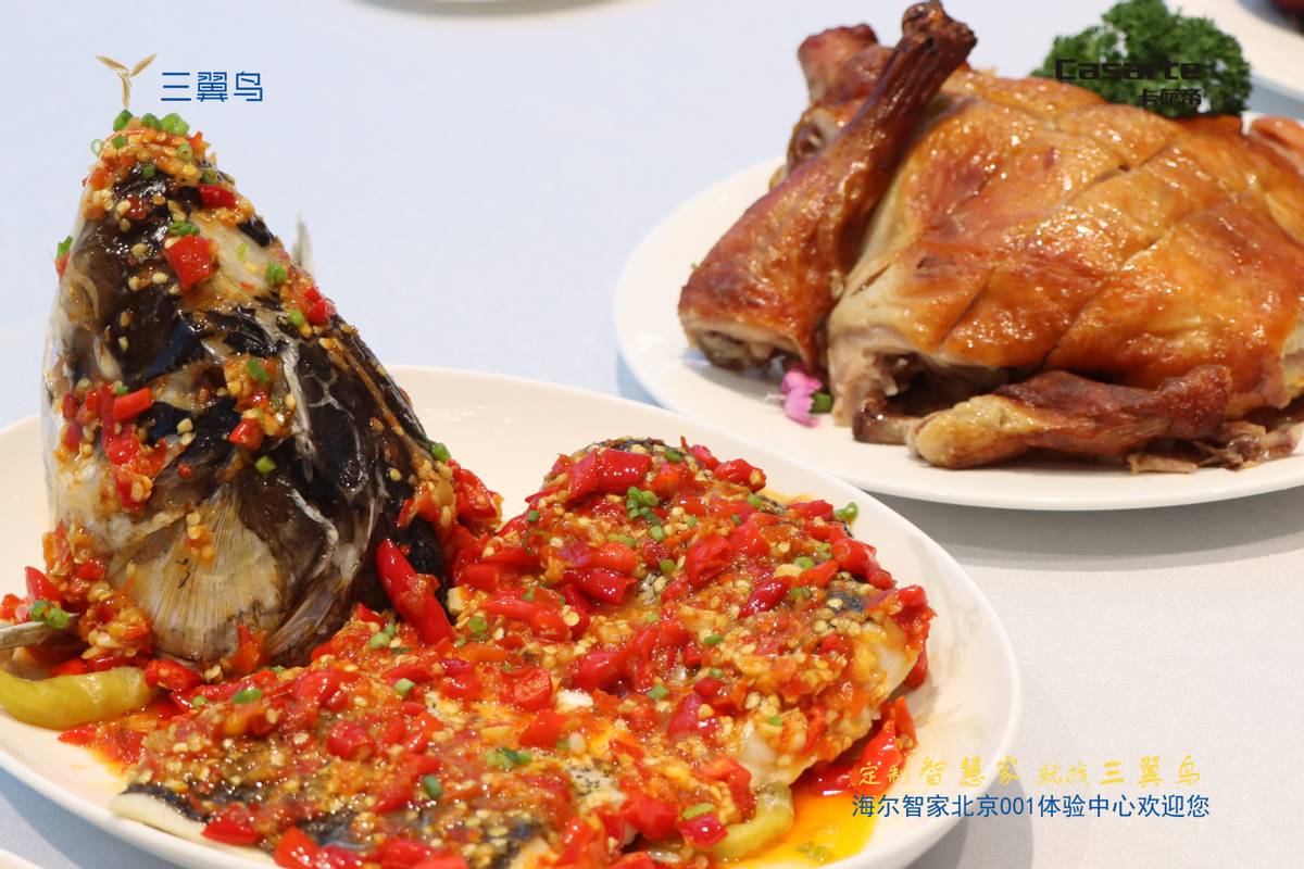 写完福字,到了备受瞩目的美食品鉴环节,三翼鸟邀请了星级大厨现场烹饪北京烤鸭、葱油鲜鲍鱼、剁椒鱼头等大师菜。大家边品尝边听制作过程讲解。让不少家长惊讶的是,没有想得那么繁琐,在三翼鸟智慧厨房,食材储鲜不用愁,烟灶联动无油烟困扰,高温匀烤省时间,水汽双循环蒸制不串味……一桌丰盛的家宴,轻松就能搞定。
